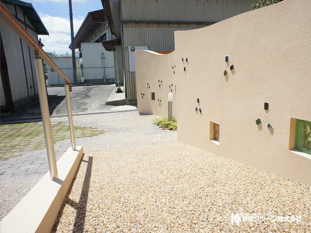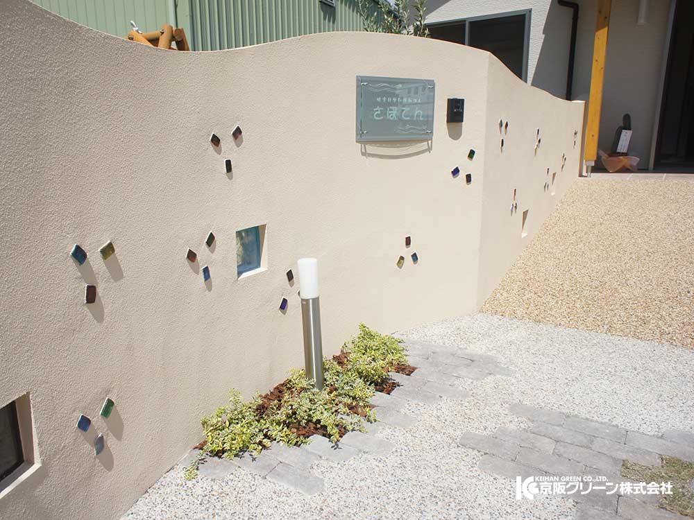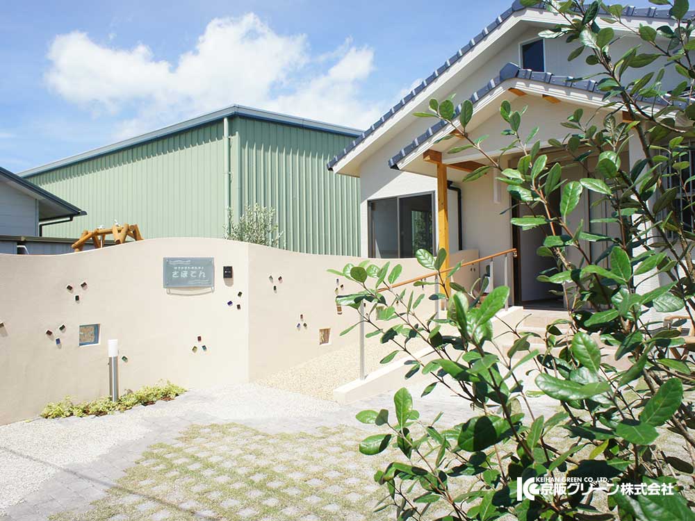 特定非営利活動法人『さぼてん』 湖南市にあるチャレンジド(ハンディキャップを持ったお子様)が利用する学童保育施設、一時預かり施設のガーデン・エクステリアを施工しました。