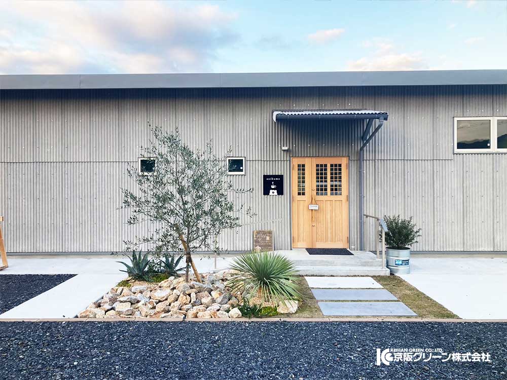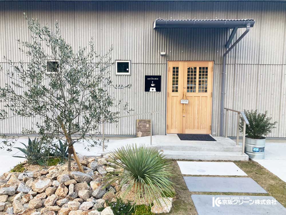 信楽にあるカフェ「aoikuma」さんの外構工事をご依頼いただきました。