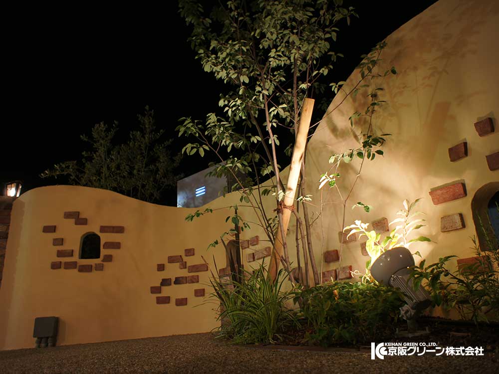 モスバーガー草津中央店のリガーデンの工事をさせていただきました。 ドライブスルーの流れをよりスムーズにするため看板の位置の移動に併せてのリガーデンです。 建物との調和を考えてご提案したデザインが、お施主様に気にいっていただけました。 欧風の曲線を生かした塗り壁とレンガで自然な柔らかな感じで、店舗の中から眺めていただく事を重視しました。 レンガは全て割ってから施工、レンガの目地も均一にせず手作りの風合いを高めました。